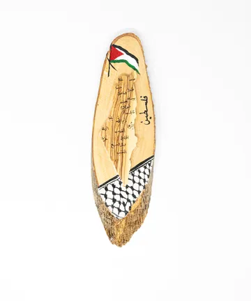 لوحة حائط بيضوية مصنوعة يدويًا من خشب الزيتون الطبيعي، محفور عليها إما خريطة فلس...طين ثلاثية الأبعاد مع أسماء المحافظات يتوجها علم فلسطين وتزينها من الأسفل نقوش الكوفية الفلسطينية، أو خريطة الأردن مع علم الأردن ونقش الشماغ الأردني الأحمر والأبيض في الأسفل.