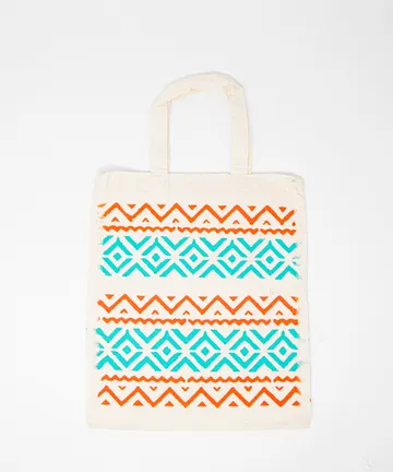 Keep your personal items stylishly organized with this luxurious mini tote bag, ...featuring a beautiful traditional Arabic pattern in modern orange and blue colors on both sides. Its compact size makes it perfect for everyday elegant use.