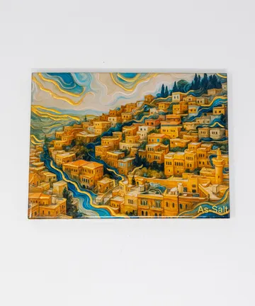 Today, Hala crafts keychains, wall frames, event giveaways, elegant trays, small boxes, and preserved floral keepsakes using resin, glass, mica, and alcohol inks. She draws inspiration from spiritual values and the symbols of Salt city, ensuring each piece carries a message of respect for details and simplicity that reflects modern elegance while maintaining cultural heritage.