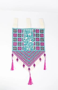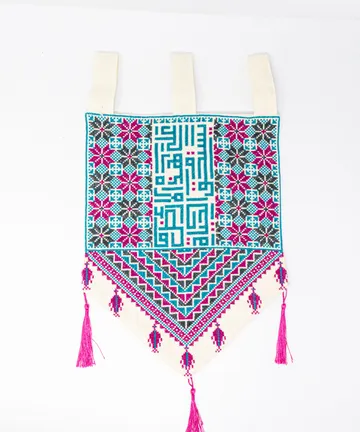 Sanaa creates embroidered frames, handbags, trays, and handmade ornaments, using materials such as Aida fabric, embroidery threads, needles, and wooden frames. What makes each piece special is the story it carries: she draws inspiration from Jordanian and Palestinian heritage, blending cultural identity with a modern spirit. As she says: “Every piece I make is not just embroidery, but a story—a mix of authenticity and a contemporary touch.”